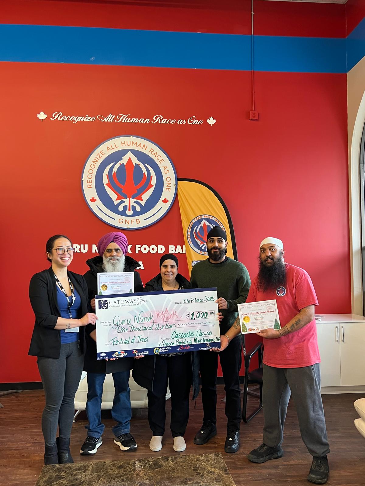 We sincerely thank Cascades Casino Delta and Seneca Building for their generous $1,000 cheque donation. Your support helps us continue serving families in need—thank you for standing with our community. 💙